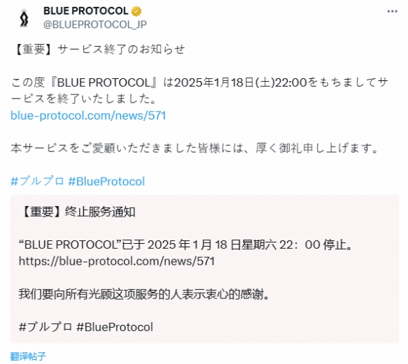 不久前,《蓝色协议》宣布游戏将于1月18日停服,昨晚(1月18日)9点,游戏已经正式停运,官方发布了一张超可爱美少女插画,向所有玩家表示谢意。来看看吧!